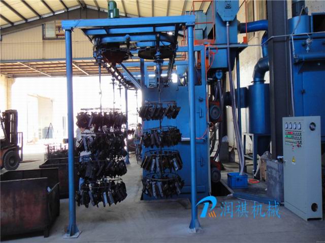 工件隨吊鏈可連續運行、步進運行或采用積放推式懸鏈輸送工件,使工件在裝卸料以及拋丸區分別處于停止狀態,實現定點裝卸和定點拋丸工序,根據工件不同可單點吊重50~2000kg,且生產率高,運行可靠,對各類易吊掛類零件的大批量清理,非常適用。如發動機缸體缸蓋、電機殼體、齒輪、摩托車發動機殼體、機車鉤尾框組件、轉向架組件、五金工具殼體、水泵等清理效果尤佳。通過拋丸清理,不但可以去除工件表面的銹蝕,清理掉結構件上的焊渣,還可以消除工件的焊接應力,提高工件的抗疲勞強度,增加工件噴漆時的漆膜附著力,并達到提高整個工件表面及內在質量的目的。是汽車、拖拉機、柴油機、電機、閥門等行業的理想選擇等。一般可按照用戶產品要求設計制作。
